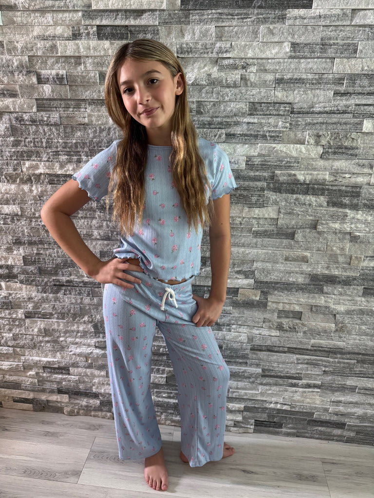 Girls Printed Lounge 2 Pc Short Sleeve Top and Pants Set